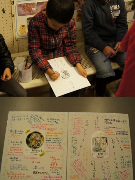 この寄せ書きは、「ミー」と一緒に富山市ファミリーパークへ送ります!