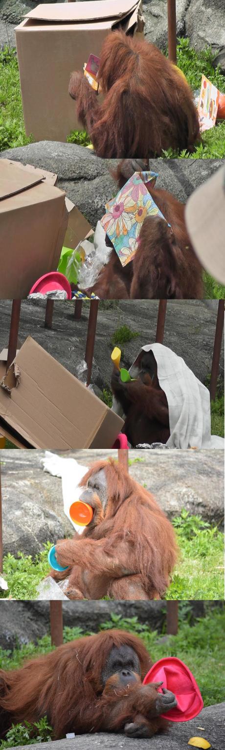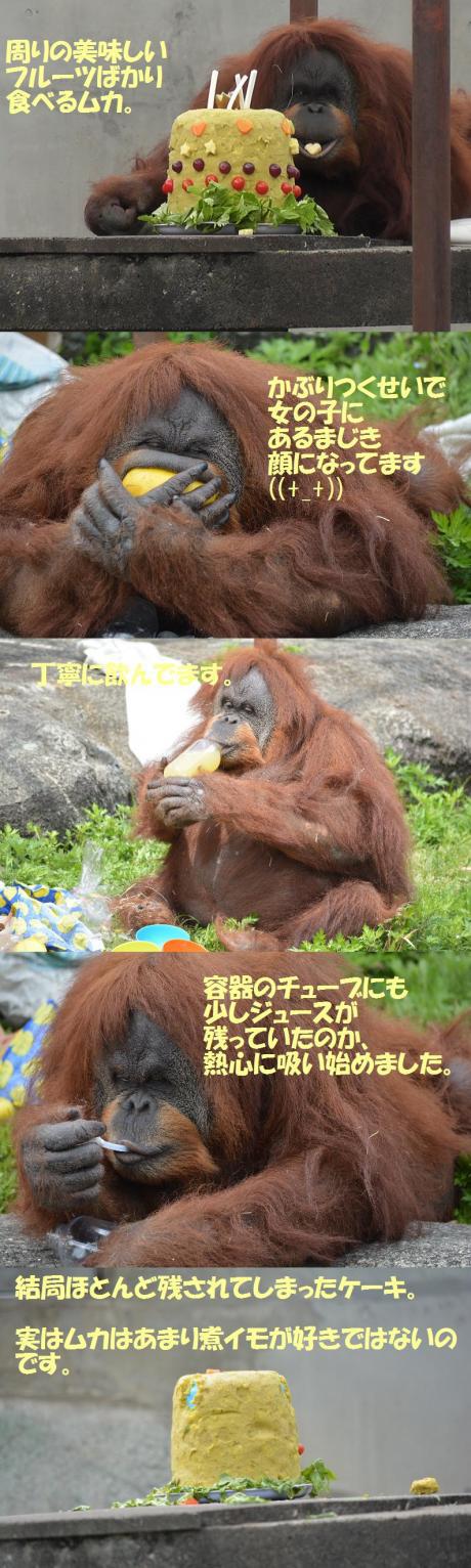 事前告知のとおり、本日、スマトラオランウータンのムカの45歳の誕生日会をおこないました。