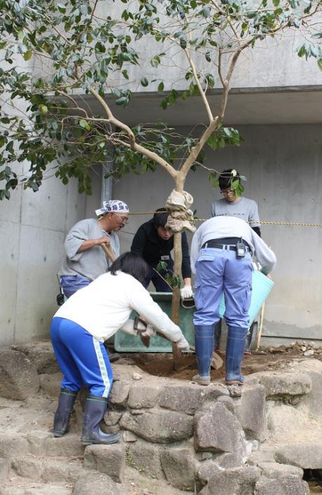ピンクのTシャツ姿は動物園飼育員で、おそろいのTシャツを着て“飼育の日”をアピールしました。
