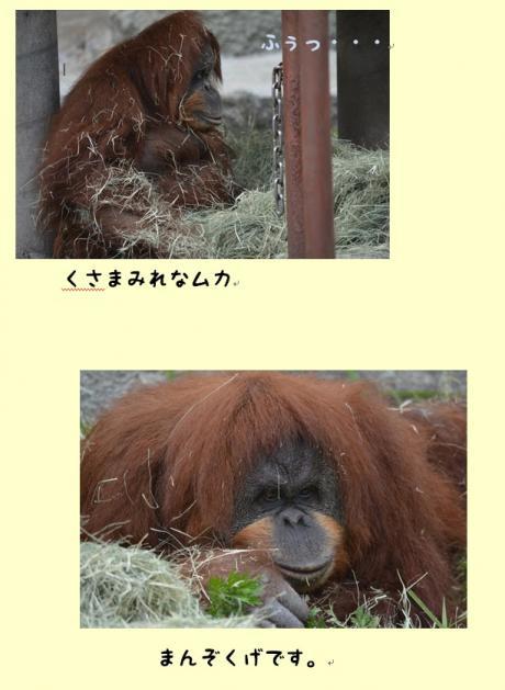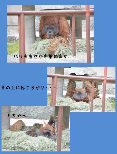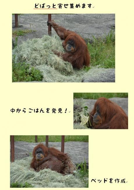 先日、オランウータンのムカに乾草の山をプレゼントしました。