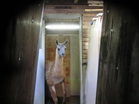 箱をトラックに固定しているとき、箱の中に入っていた乾草を食べるほどの余裕が・・・(笑)