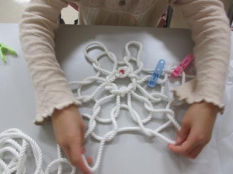 今回のフィーダーはロープを使って作りました。ボールを入れるようなネットの形にしました。