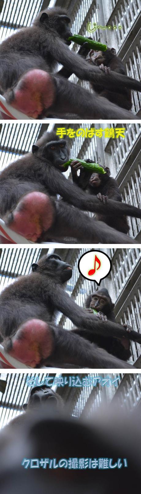 また、みんなが飼育員から食べ物をもらっていると、自分ももらおうと手をのばしてきます。