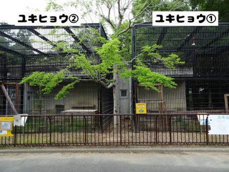 2月にユキヒョウがやってきてから、コハク(オス)とリーベ(メス)を1日交代で外の運動場に出していましたが、4月28日より2つの運動場を使い、2頭同時に展示をすることになりました。
