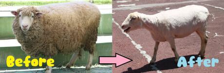 毛の下に隠れていた体の形やヤギとの違いを観察するチャンス!