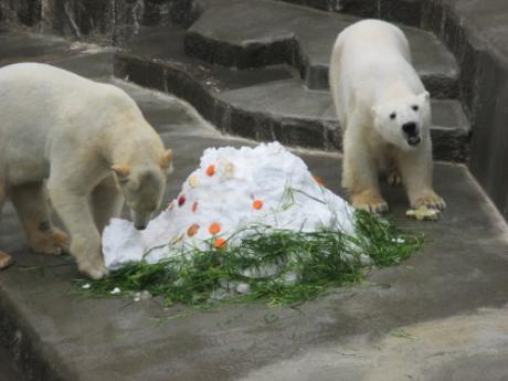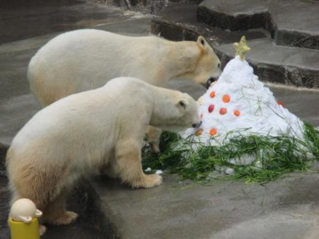 今日はクリスマスイベントとして、バフィンとモモに「雪のツリー」をプレゼントしました。