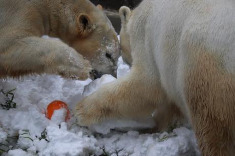 雪を久しぶりに触った飼育員も喜んでいました(笑)