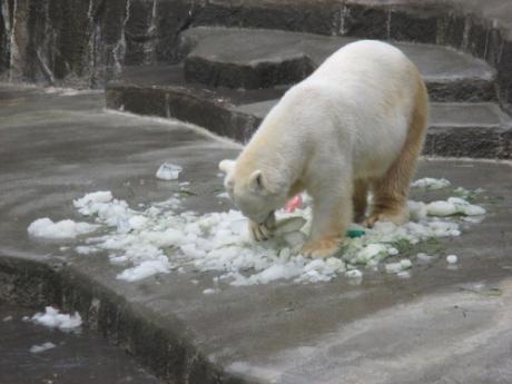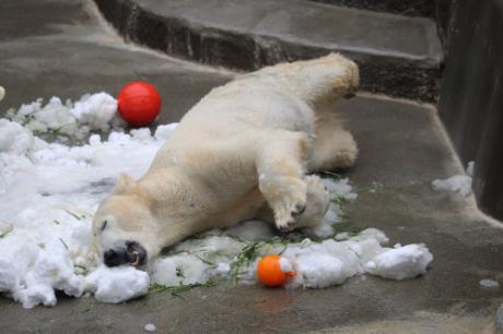 時間が経つにつれ、雪が固まってきました。その雪の状態の違いで色々な行動が見られたので、おもしろかったです。またプレゼントできたらいいなと思います。