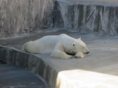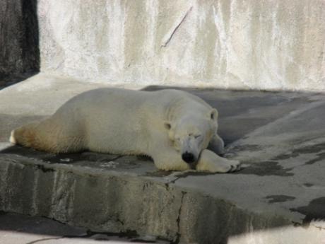 さて、ホッキョクグマたちは、寒くなってプールにあまり入らなくなり、まったりと休んでいることが多くなりました。
