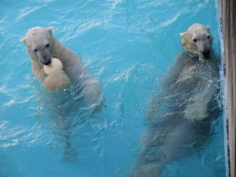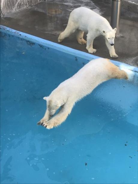 「ホッキョクグマのバフィンとモモ🎶」
