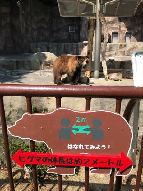 エゾヒグマ展示場の前に設置した、ソーシャルディスタンス看板です!