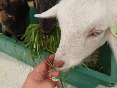 せっかくなので、ヤギとヒツジに見せてみました。