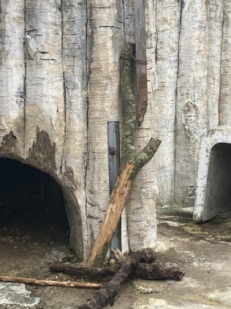 そんなビーバー達が少しでも外で活動する時間が長くなるように、パドックにかじり木を設置してみました。