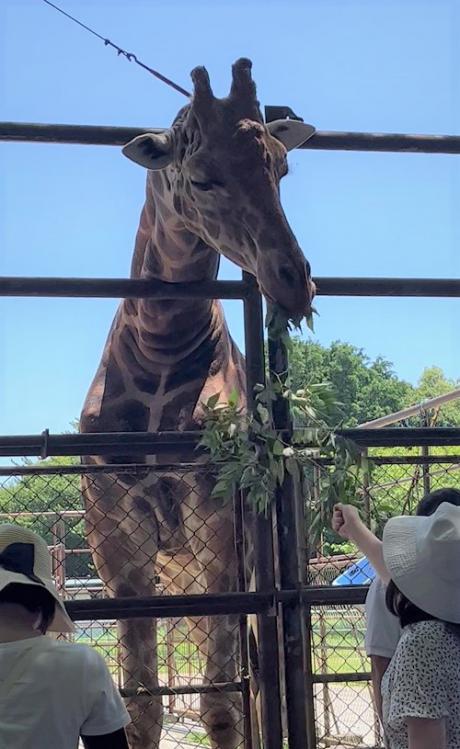 さて、とても神経質で怖がりなルイが少しでも人に慣れてくれるよう願って、2組のお客様に協力をお願いし、葉っぱをあげてもらいました!
