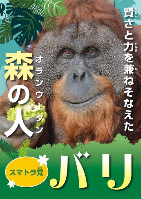 こちらはどうぶつ選挙スマトラ党候補の、スマトラオランウータンのバリ、スマトラオランウータンのバリでございます。