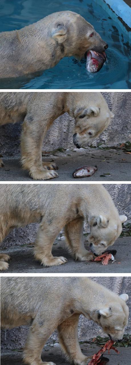 本日はバフィンとモモにクリスマスプレゼントとして大きなマスをあげましたよ~