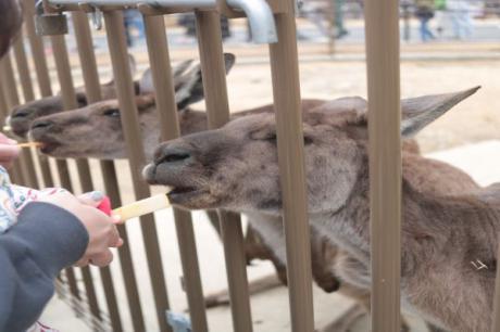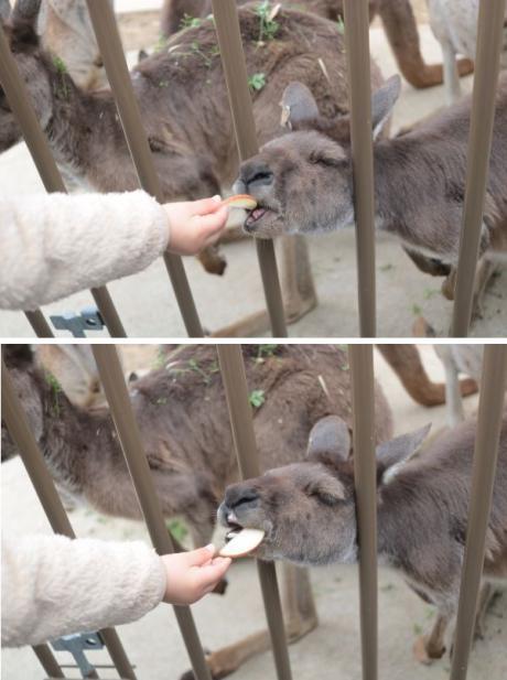 ▽ カンガルーのエサやり体験
