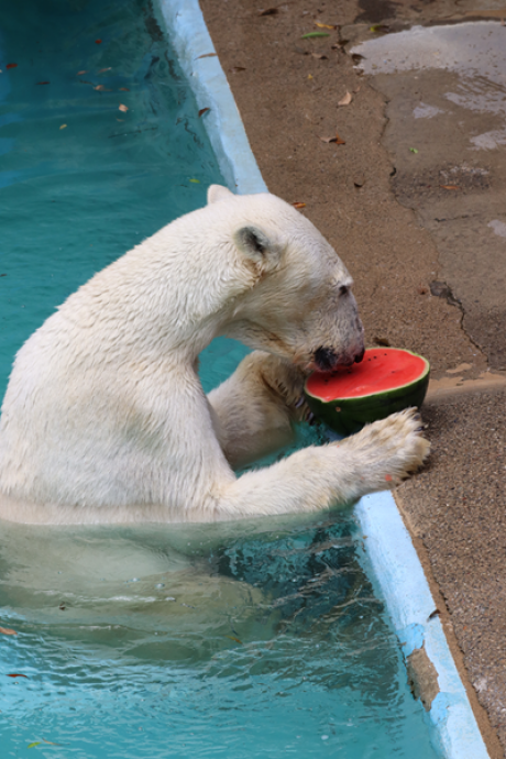 イベントの最後に、ユキに凍らせたスイカをあげ、美味しそうに食べるユキでした♪