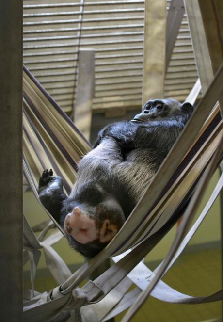 類人猿たちの寝室にハンモックを設置してから一年が経過しました。