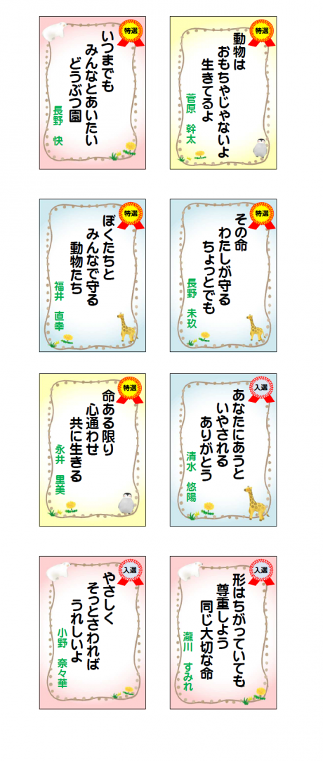 どの作品も動物を大切に想う気持ちがあふれたすばらしい作品です。