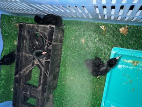 ヒクイナのヒナ4羽が動物病院に持ち込まれる。