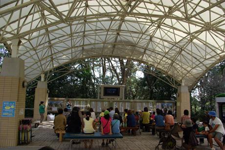 センターで作成した「いのちの教育事業」オリジナルDVDをゾウ舎前広場で放映することとなりました。