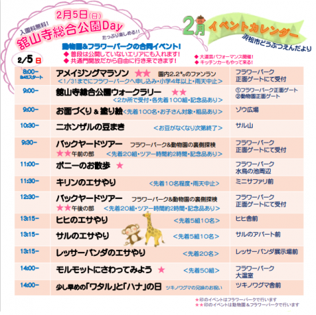 2月5日(日)に、フラワーパークと動物園を自由に行き来できる「舘山寺総合公園Day」を開催します。