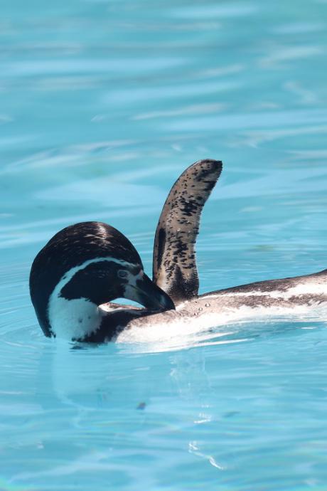 ペンギン展示場の防鳥ネットは、衛生管理のために継続します。
