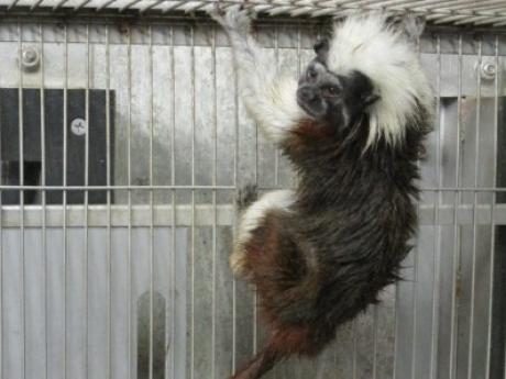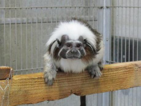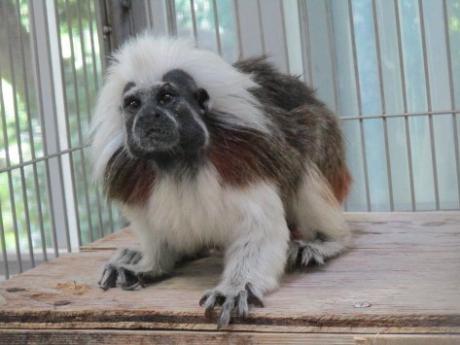 小型サル舎に、ワタボウシタマリン3頭が来園しました。