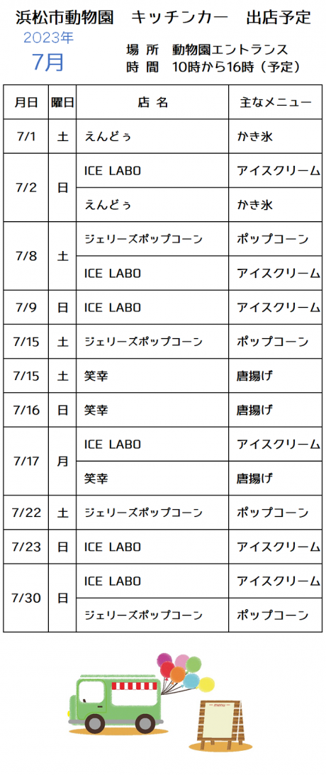 ※天候等により営業時間変更、または出店休止になる場合もありますのでご了承ください。