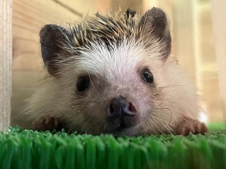 来園当初は針をすぐに立て威嚇し、持つのも一苦労でしたが、1年ほどで爪切りができるようになり、体も少しづつ触らせてくれるようになりました。