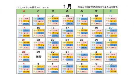 1月のアムールトラの展示スケジュール予定をお知らせします。