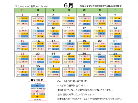 6月のアムールトラの展示スケジュール予定をお知らせします。