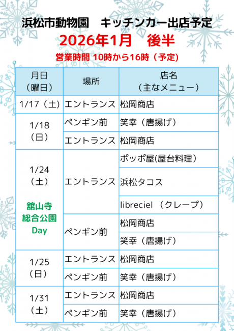 2026年1月後半のキッチンカー出店予定を掲載します。