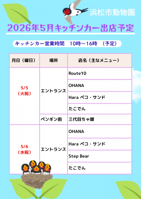 2026年5月上旬のキッチンカー出店予定を掲載します。