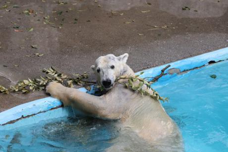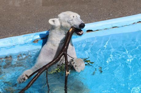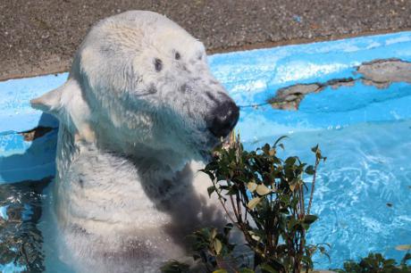 暖かくなりましたね。休園期間中もバフィンとモモは元気に過ごしています。
