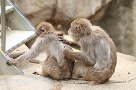 日中、ニホンザルたちを眺めていると、毛づくろい(グルーミング)をしているのが見られます。