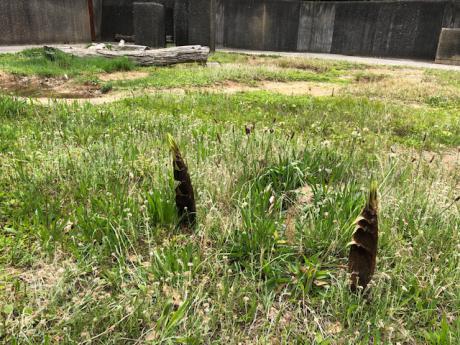 ついに、ついに、ハマコの運動場にもタケノコが生えてきました……