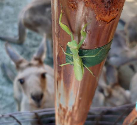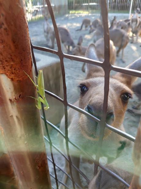 気になるカンガルーと、逃げるカマキリ。笑