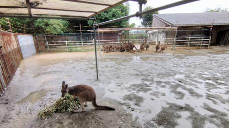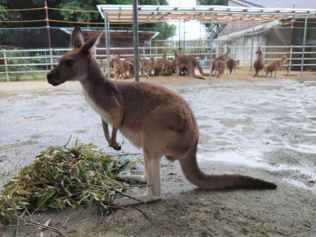 当園のカンガルー達は雨に濡れるのを嫌うのか、