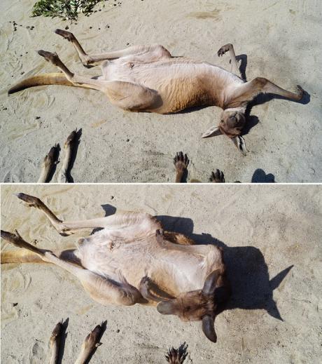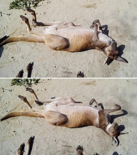 「【カンガルー】寝返りを打っただけです。」