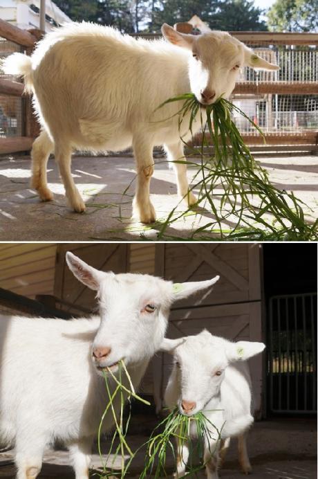 ↑手前のマイが少しずつ青草を食べるのに対し、