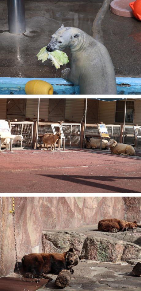 ▽ ホッキョクグマ、ヒツジとヤギ、ヒグマ