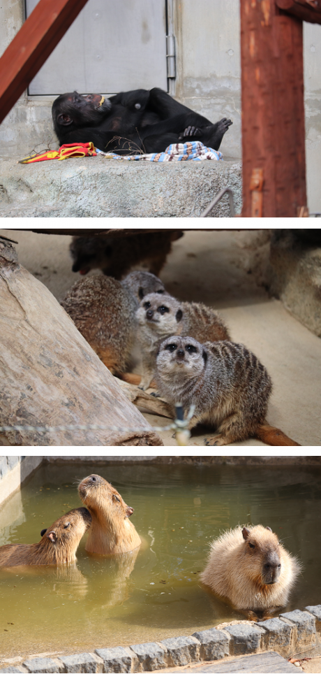 ▽ チンパンジー、ミーアキャット、カピバラ
