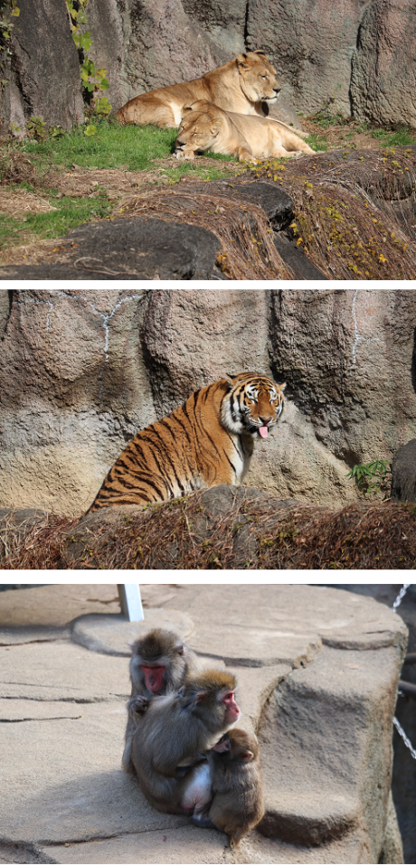 ▽ ライオン、トラ、ニホンザル