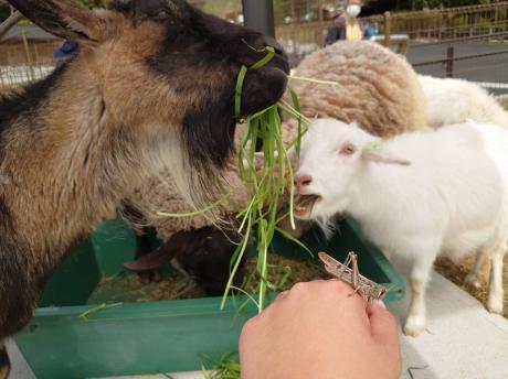 せっかくなので、ヤギとヒツジに見せてみました。