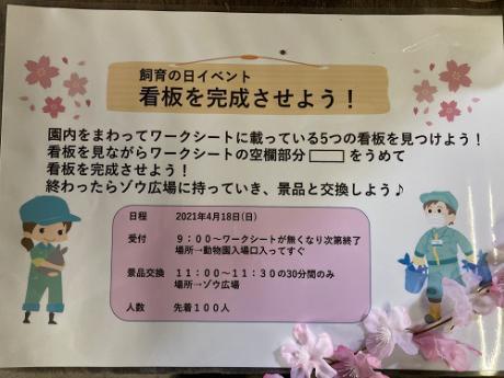 園内を回って、動物の様子を楽しみながら、飼育員が愛情込めて作った沢山の動物看板にも注目してもらい、みなさんにもっと動物について知ってもらえる様なクイズラリー形式のイベントになっています!