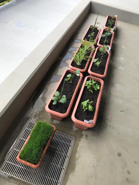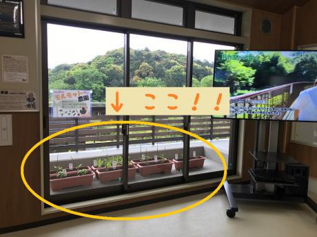 ふれあい棟のモニター横の屋外スペースで野菜の栽培を始めました!