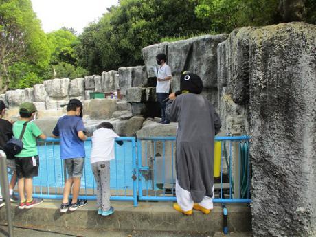 4月24、25日の2日間で世界ペンギンデーのイベントを行いました!浜松市動物園で飼育しているフンボルトペンギンについて、クイズを出しながら紹介しました。通常は餌としてアジを与えていますが、イベントの2日間は特別に、ワカサギもプレゼントしました。小さくて軟らかいワカサギはペンギン達の大好物なんです!