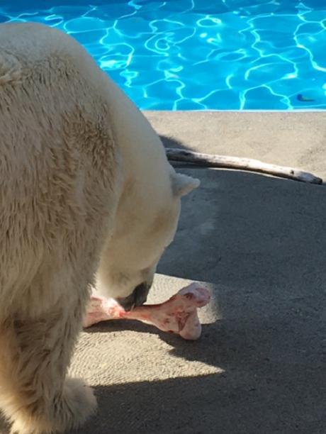 「【ホッキョクグマ】バフィンとモモ♬&牛骨」